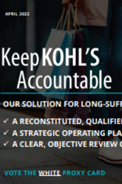 MACELLUM ADVISORS GP, LLC ISSUES DETAILED INVESTOR PRESENTATION ON KOHLS CORP