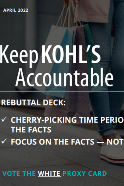 MACELLUM ADVISORS GP, LLC ISSUES DETAILED INVESTOR PRESENTATION ON KOHLS CORP